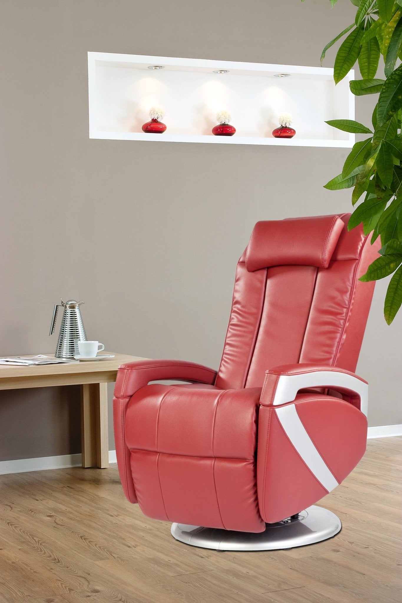 Помимо отборных технологий и удобных функций, это высококачественное массажное кресло убеждает своим привлекательным внешним видом. Эргономичная форма "Elegante" AT 315 Wellfit 1A от Alpha Techno предлагает вам свободный выбор между высококачественным покрытием из натуральной кожи или искусственной кожей, за которой легко ухаживать. Он доступен в красном и черном цветах. Его чрезвычайно стильное впечатление обусловлено поразительно компактными размерами. Даже для пользователей с ограниченными физическими возможностями садиться и вставать - это детская забава благодаря слегка приподнятому сиденью. Мягкая спинка и достаточно длинная подставка для ног регулируются электрически, бесступенчато и независимо друг от друга, плавно направляя вас в удобное лежачее положение. Благодаря подвижной подставке для ног "Eleganten" может поворачиваться на 180 градусов, что делает его идеальным для расслабленного вечернего просмотра телевизора или уютного полуденного сна.