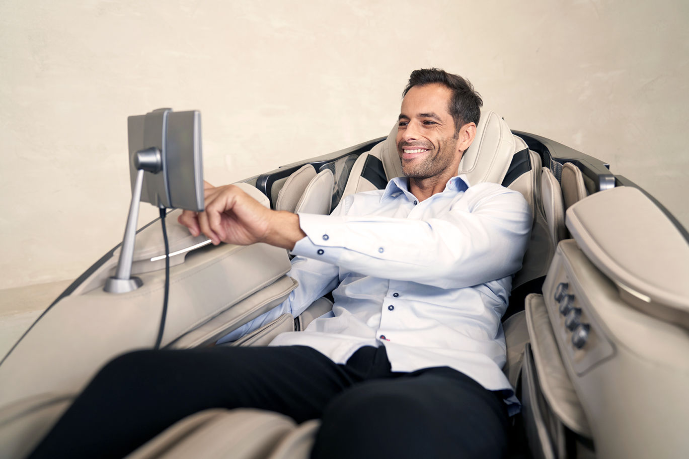 Массажное кресло проверяет степень усталости по пульсу, содержанию кислорода в крови и микроциркуляции и благодаря специальному алгоритму подбирает индивидуально настроенную автоматическую программу.