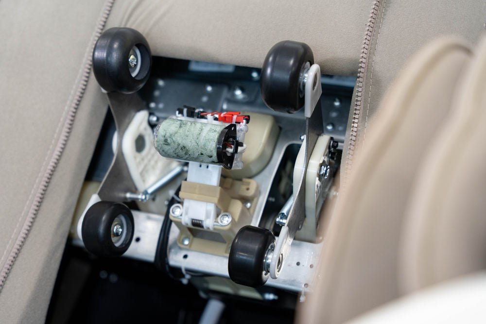 Поворотная рама, поворачивающаяся на 170 градусов, позволяет принимать не только сидячее, но и откинутое положение, что обеспечивает лучшую нагрузку и разгрузку позвоночника по сравнению с обычными массажными креслами