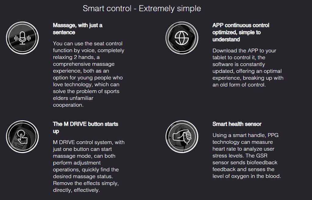 Работающий на основе передового микропроцессора M.6 Gen, Master Drive обучается и адаптирует свой массаж, изменяя давление, скорость и движения массажа, чтобы идеально адаптироваться к контурам каждого уникального тела с помощью интеллектуальных массажных роликов Vario Motion 4D.