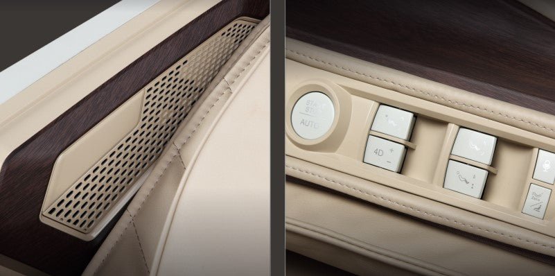 Подушки безопасности - ноги Подушки безопасности - уровень интенсивности регулируется Подушки безопасности - плечи Подушки безопасности - предплечье Подушки безопасности - икры Амбиентное освещение Аудио - Bluetooth Аудио - встроенные динамики Управление - встроенное Управление - планшет Память пользователя Датчик уровня кислорода в крови Подножка - плавная регулировка Подножка - электр.